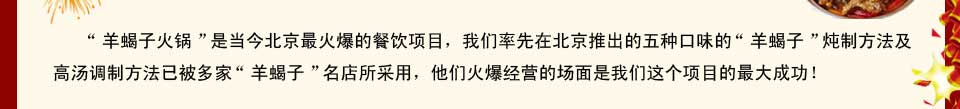 一、羊蝎子火鍋在北京有300多年的歷史,是當(dāng)今北京京城最火爆的餐飲項(xiàng)目。 二、羊蝎子味型 三、羊蝎子產(chǎn)品 四、培訓(xùn)的內(nèi)容 五、羊蝎子火鍋加盟費(fèi)用 |